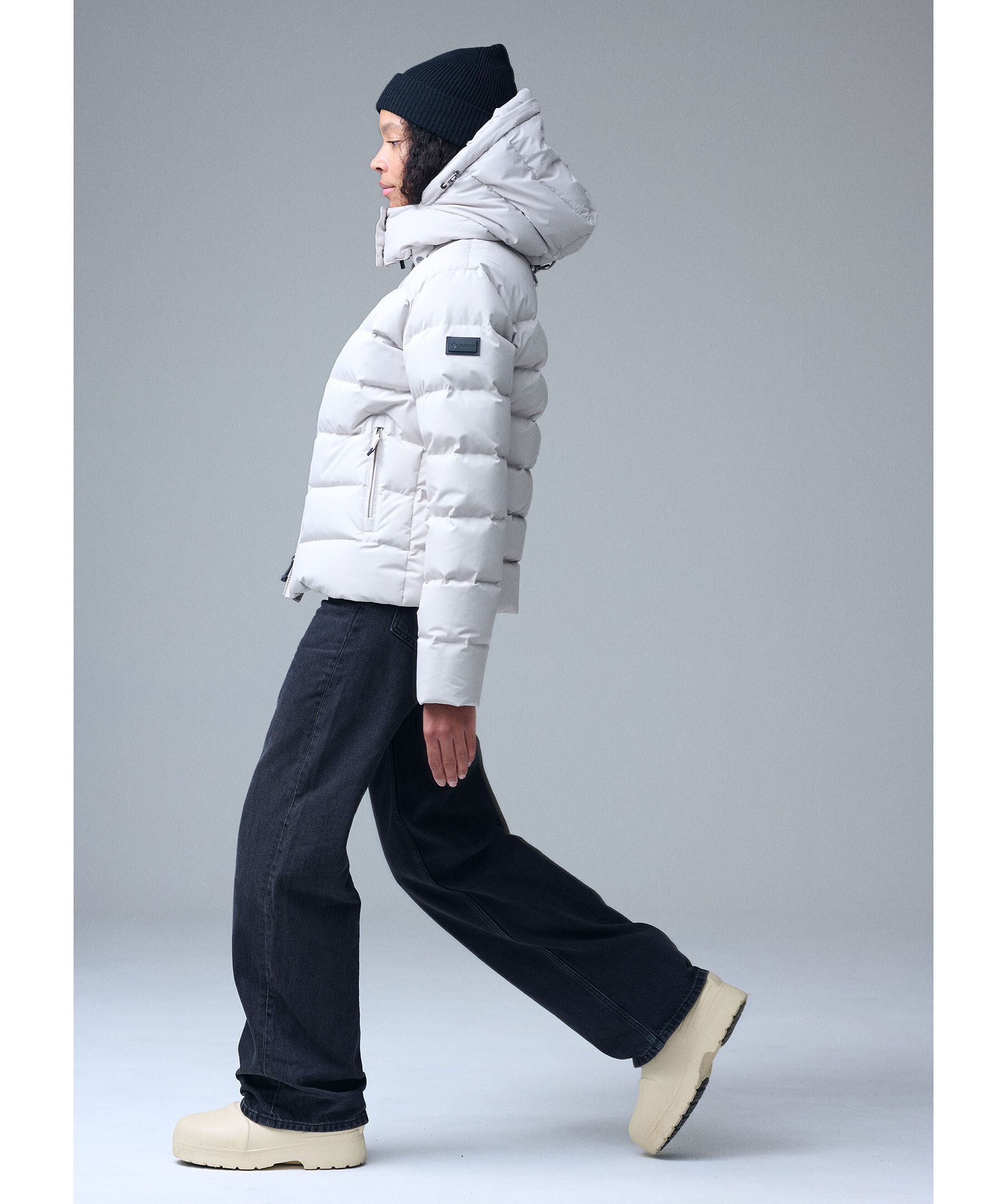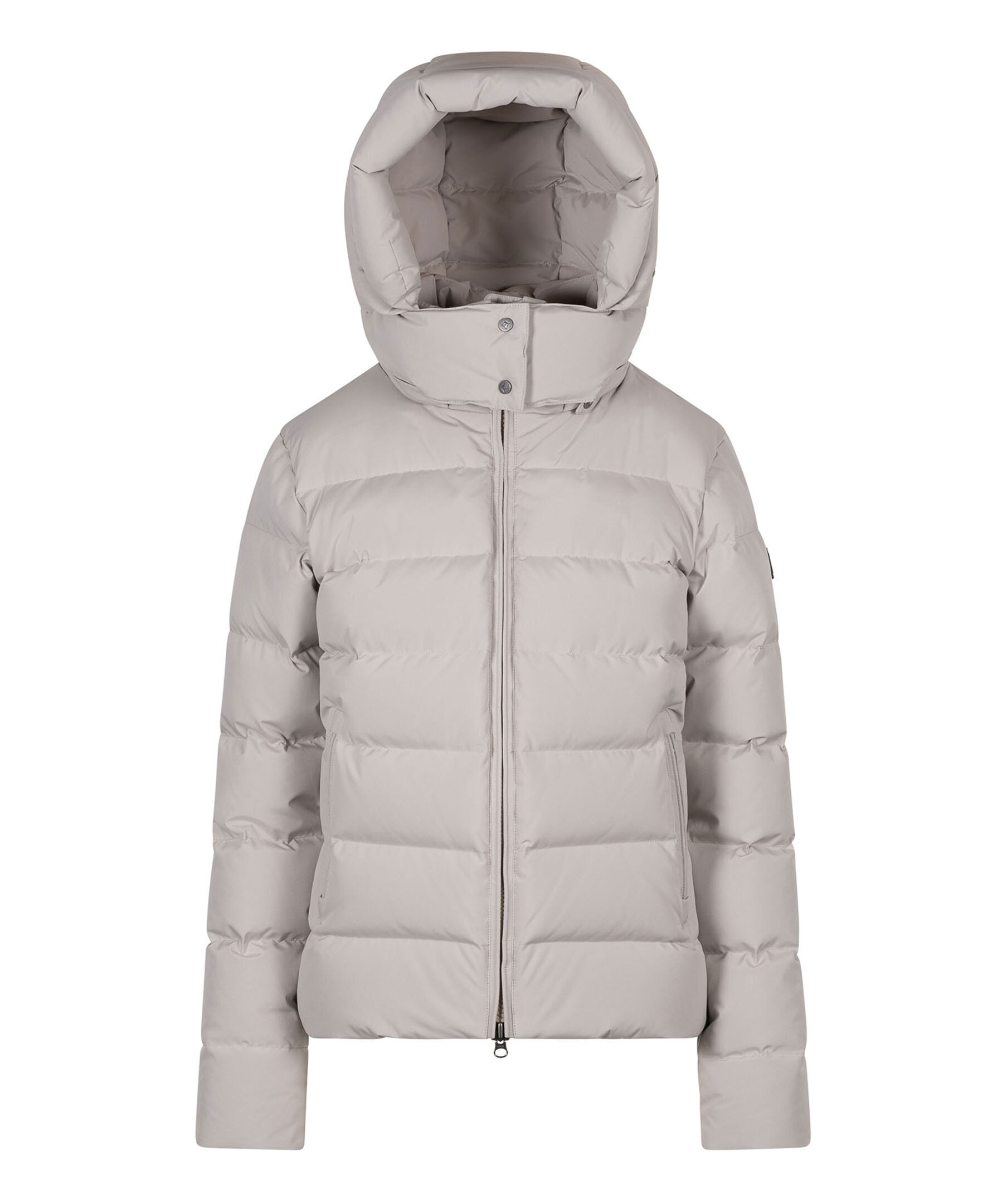 Sandfärgad dunjacka från Cedrico. Jackan stängs med tvåvägsdragkedja och har två sidfickor med dragkedja, avtagbar huva med dragsko och logotyp på vänster ärm. Tillverkad i polyester med dunfyllning.