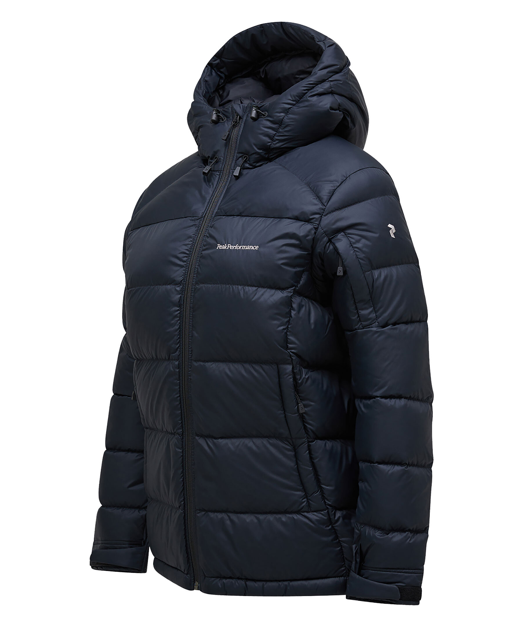Svart, dunjacka i puffermodell med luva från Peak Performance. Jackan kombinerar värme och mjukhet med en lätt, packningsbar konstruktion. En mångsidig jacka, både när det kommer till funktion och stil. Justerbart ärmslut med kardborreband, yttre upphängningsögla i nacken, Peak Performance-brodyr på bröstet och P-logotyp brodyr på ärmen. Fast och tvåvägs (höjd och bredd) justerbar huva, hellång YKK reversed coil dragkedja fram och fleecefodrat hakskydd. Handfickor med dragkedja, inre förvaringsficka i mesh, liftkortficka med dragkedja och innerficka med dragkedja. Tillverkad av återvunnen polyamid och fylld med premium 90/10 ankdun/fjädervaddering som ger exceptionell värme.