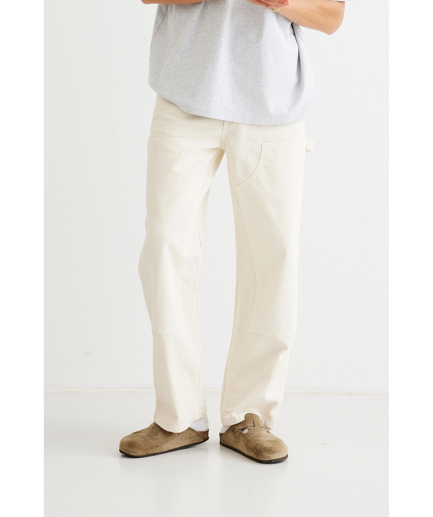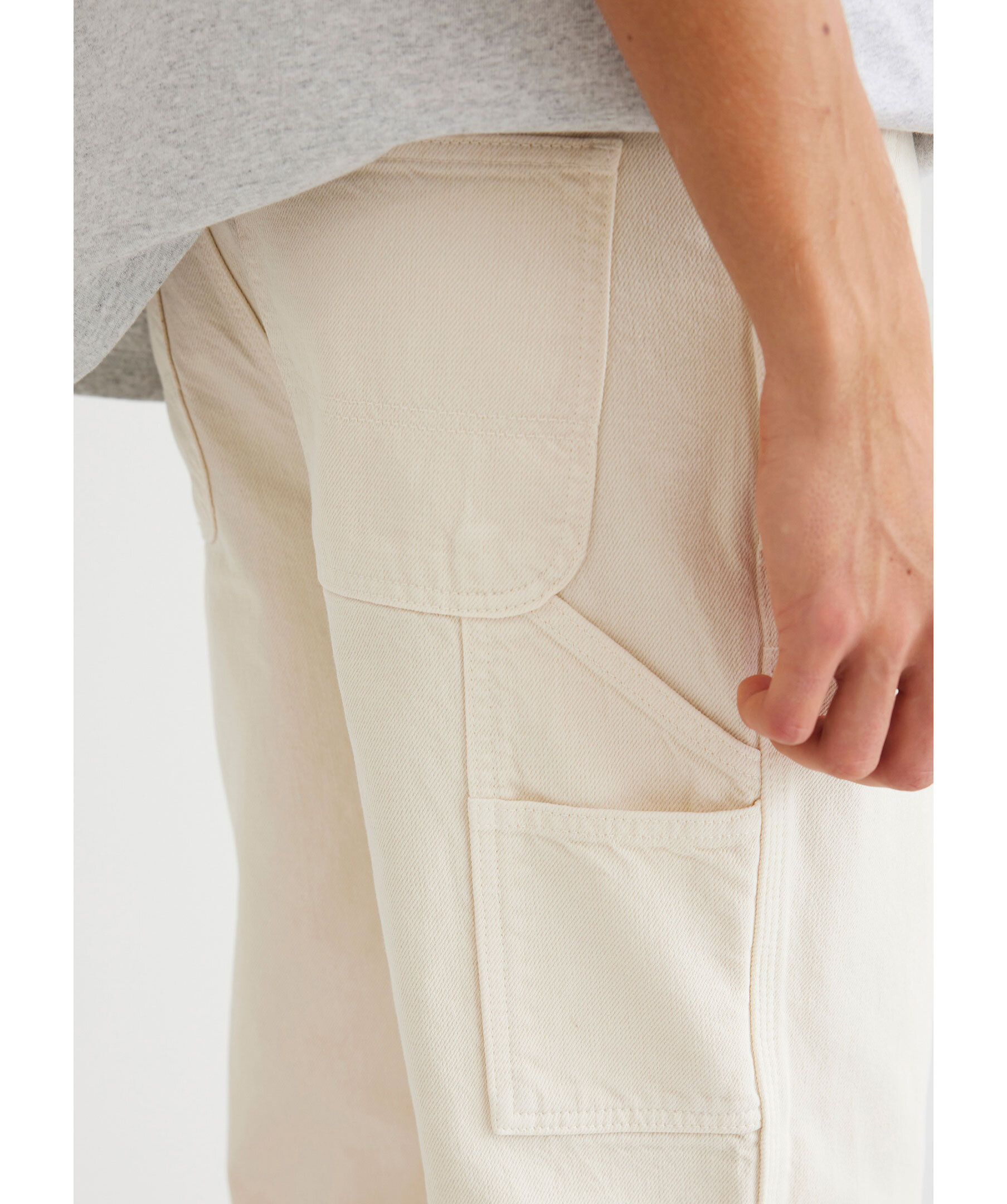 Benvita jeans från Woodbird. Jeansen har en snickarinspirerad stil, mellanhög midja, fem vanliga fickor samt fickor på benet, gylf med dragkedja och bälteshällor i midjan. Tillverkade i bomull.
