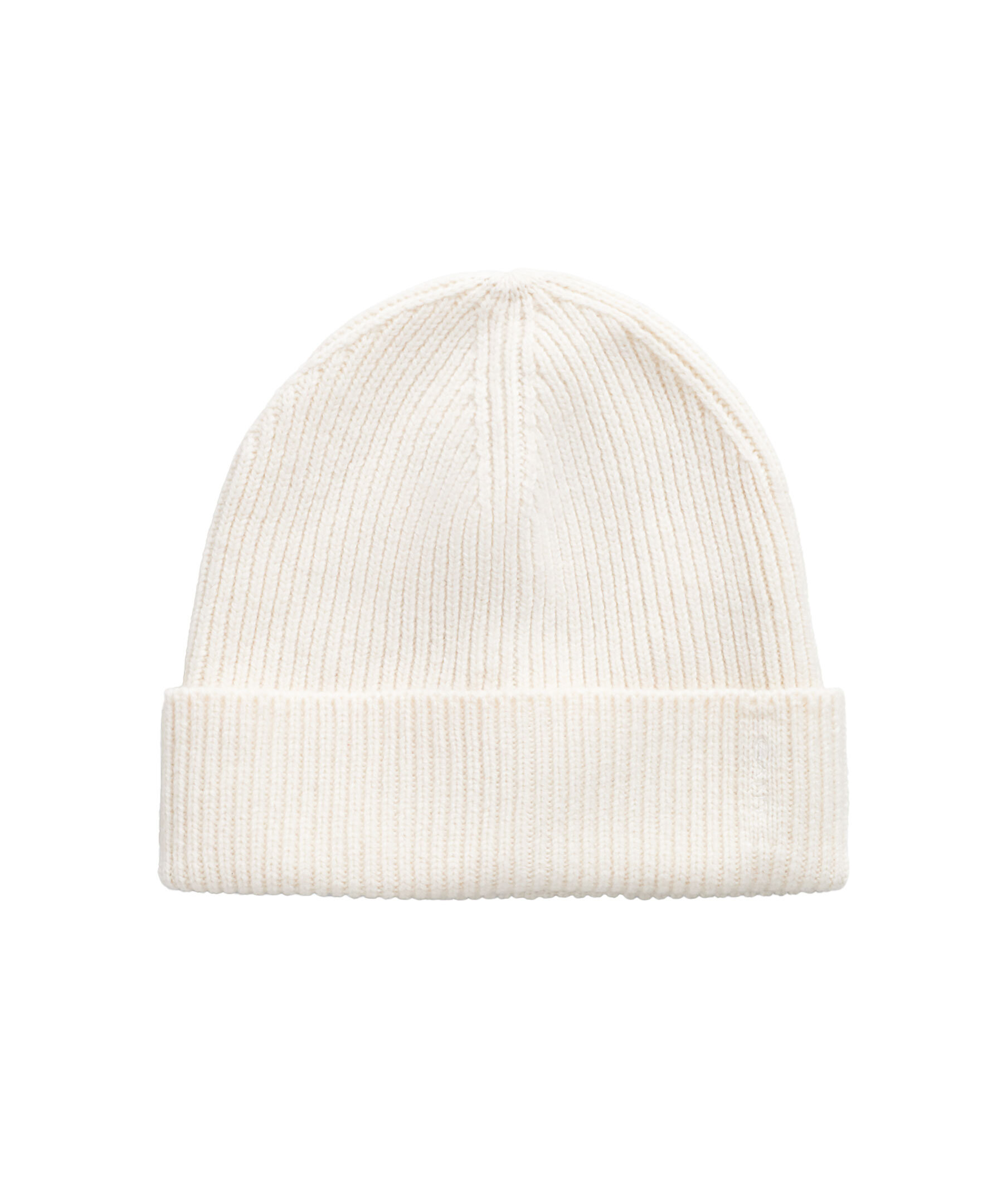 Krämvit mössa från Gant. Mössan är ribbstickad och har en uppvikt kant. Diskret, broderad logga i vänstra hörnet på den uppvikta kanten. Tillverkad av 100% ull.