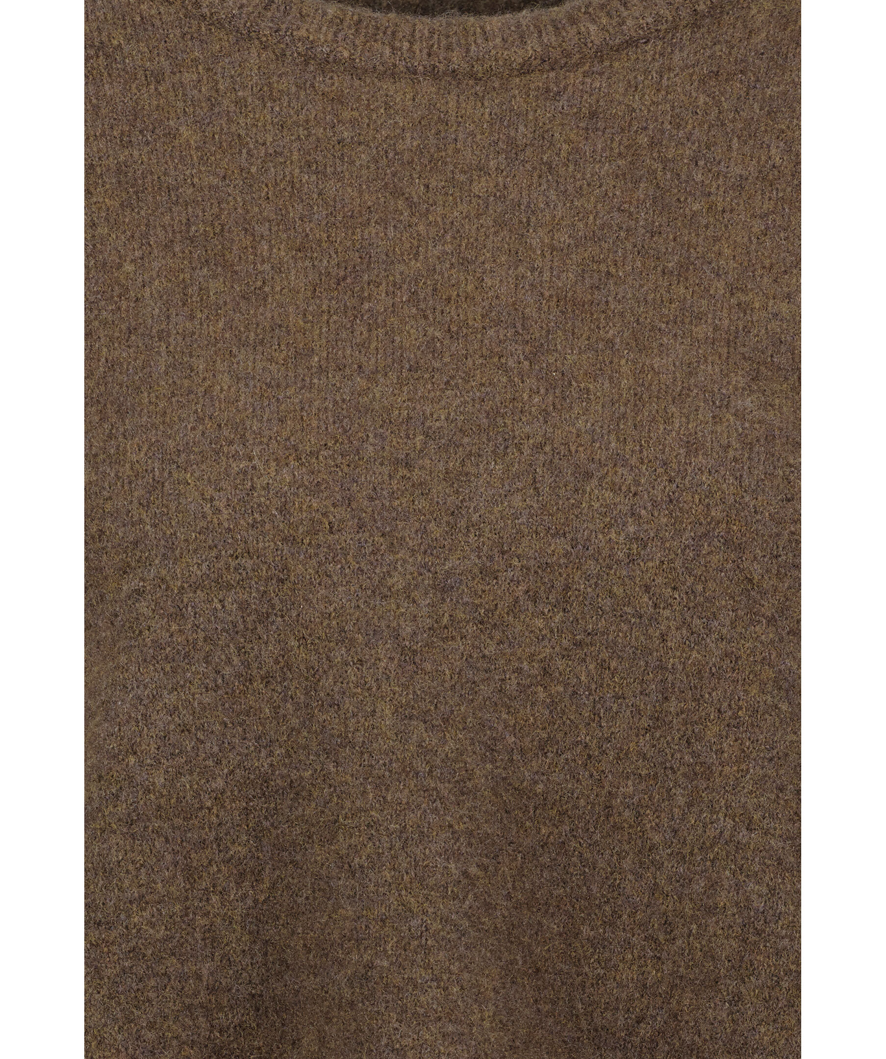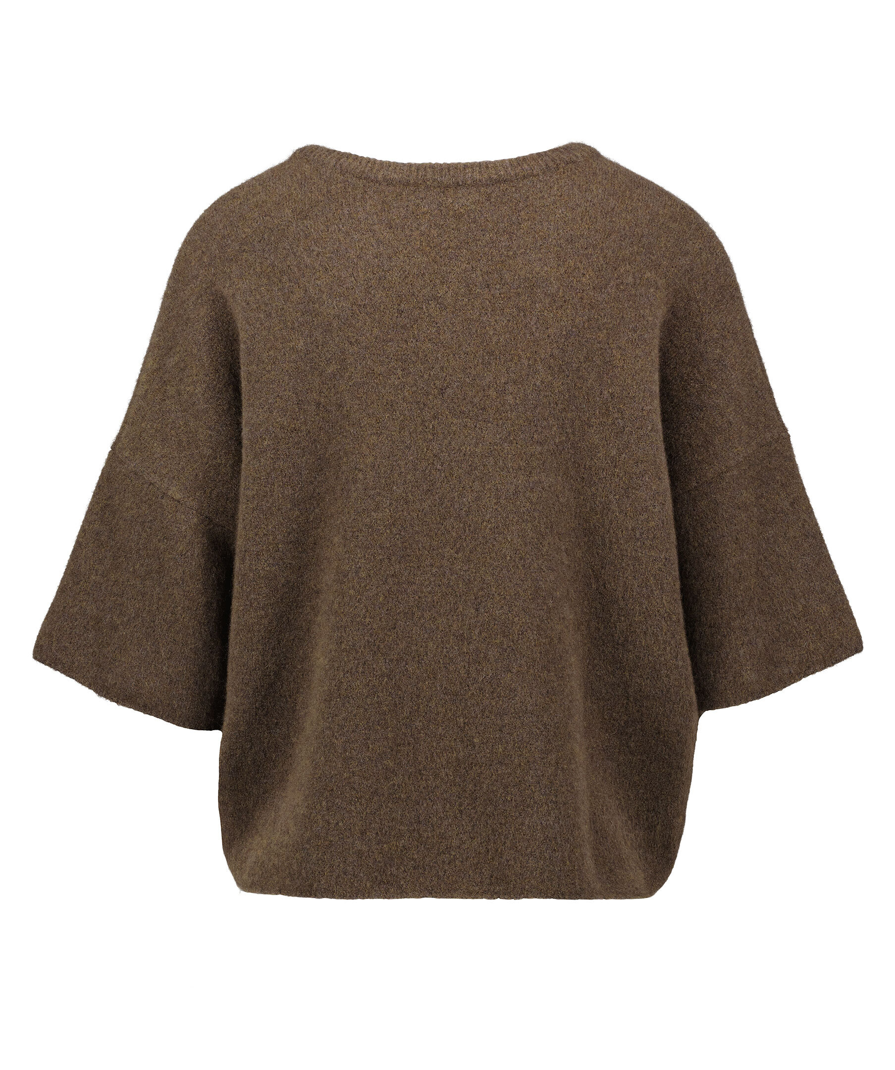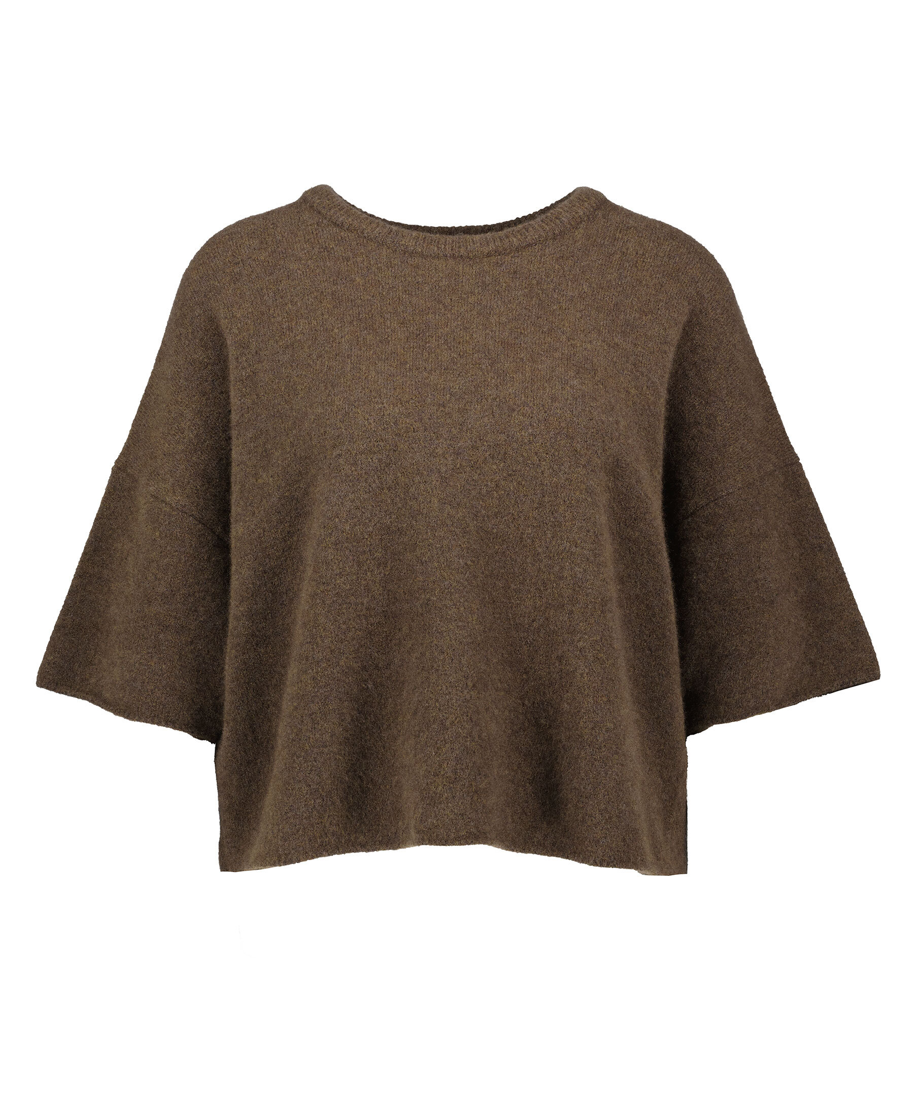Brun, stickad kortärmad tröja från Filippa K. Rundad halsringning. Avslappnad passform. Stickad i en tjock ull- och jakhårsblandning. Droppade axlar.
